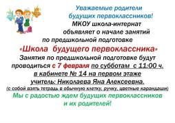 МКОУ школа-интернат приглашает на занятия по предшкольной подготовке.
